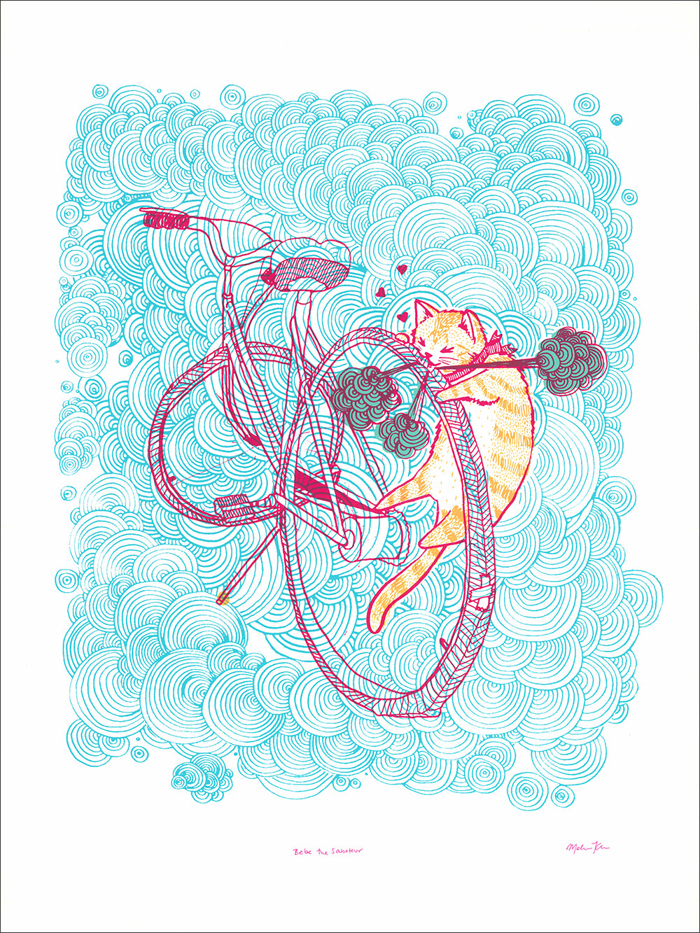 My cat Bebe loved to bite everything when she was a kitten. So when my friend suggested “a bicycle built for Bebe” theme, I thought, “Bebe wouldn’t ride a bicycle, she’d bite it.”