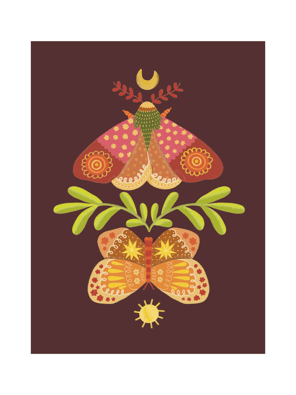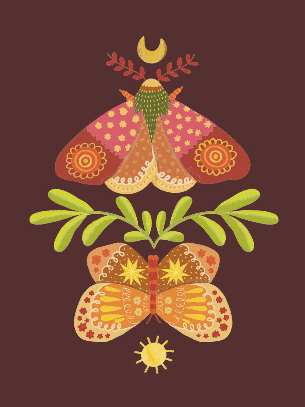 ABOUT THE ART: I was playing with the idea of day and night, and butterflies and moths came to my mind and just wanted to implement them both and use unique patterns for their wings.